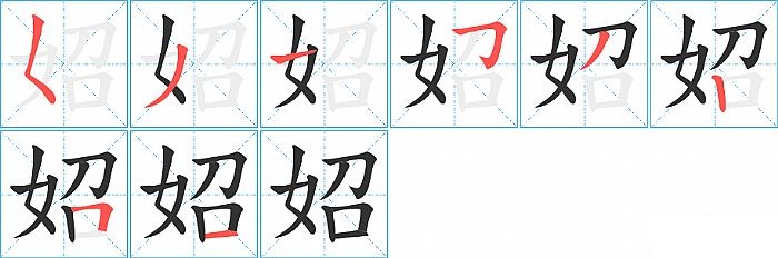 《妱》字的笔顺分步演示图(一笔一画写汉字)
