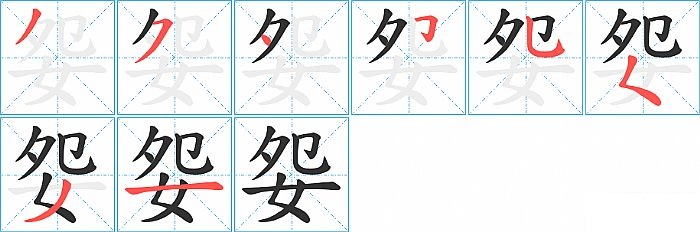 妴是上下结构,妴的部首是“女”,部外笔画5画,总笔画8画,妴的笔画顺序是“撇、横撇/横钩、点、横折钩、竖弯钩、撇点、撇、横”。看看“妴”字什么意思 >>