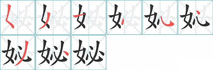 《妼》字的笔顺分步演示图(一笔一画写汉字)