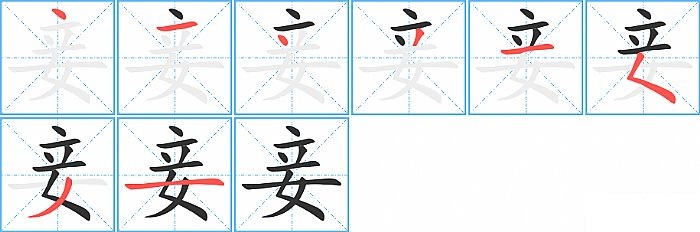 《妾》字的笔顺分步演示图(一笔一画写汉字)