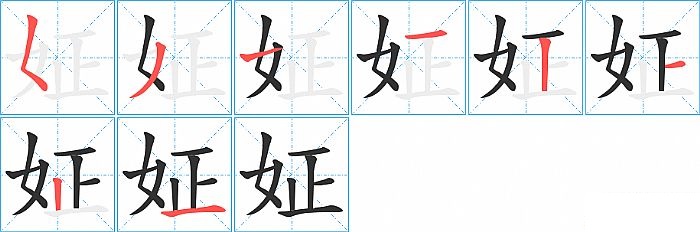 《姃》字的笔顺分步演示图(一笔一画写汉字)