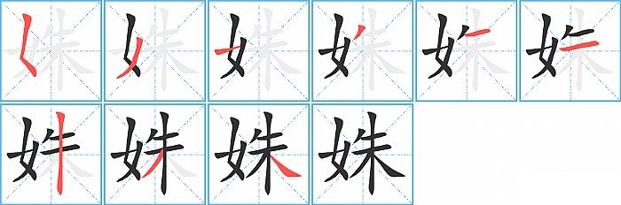 《姝》字的笔顺分步演示图(一笔一画写汉字)