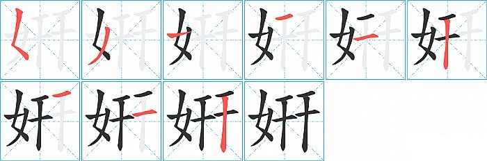 《姸》字的笔顺分步演示图(一笔一画写汉字)