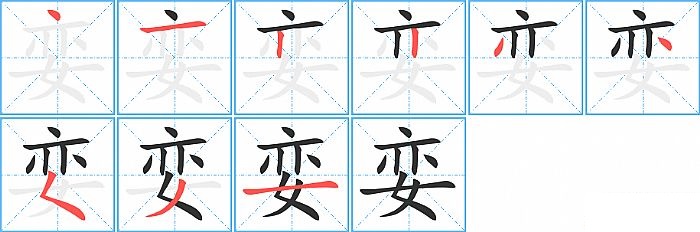《娈》字的笔顺分步演示图(一笔一画写汉字)