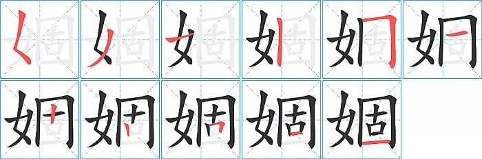 婟是左右结构,婟的部首是“女”,部外笔画8画,总笔画11画,婟的笔画顺序是“撇点、撇、横、竖、横折、横、竖、竖、横折、横、横”。看看“婟”字什么意思 >>