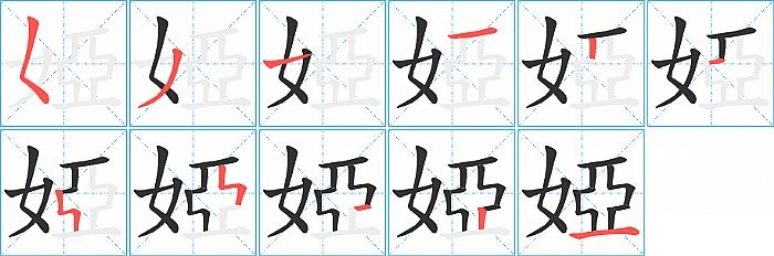 婭是左右结构,婭的部首是“女”,部外笔画8画,总笔画11画,婭的笔画顺序是“撇点、撇、横、横、竖、横、竖折撇/竖折折、竖折撇/竖折折、横、竖、横”。看看“婭”字什么意思 >>
