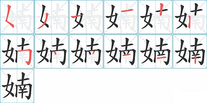 婻是左右结构,婻的部首是“女”,部外笔画9画,总笔画12画,婻的笔画顺序是“撇点、撇、横、横、竖、竖、横折钩、点、撇、横、横、竖”。看看“婻”字什么意思 >>