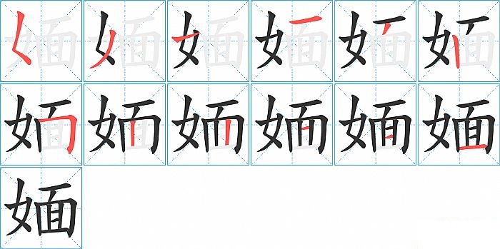 媔是左右结构,媔的部首是“女”,部外笔画9画,总笔画12画,媔的笔画顺序是“撇点、撇、横、横、撇、竖、横折、竖、竖、横、横、横”。看看“媔”字什么意思 >>