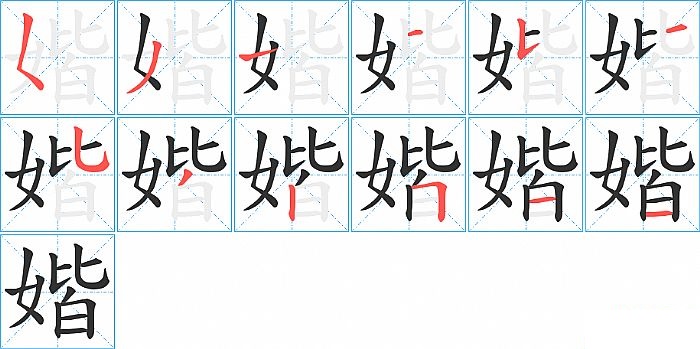 媘是左右结构,媘的部首是“女”,部外笔画9画,总笔画12画,媘的笔画顺序是“撇点、撇、横、横、竖提、撇、竖弯钩、撇、竖、横折、横、横”。看看“媘”字什么意思 >>