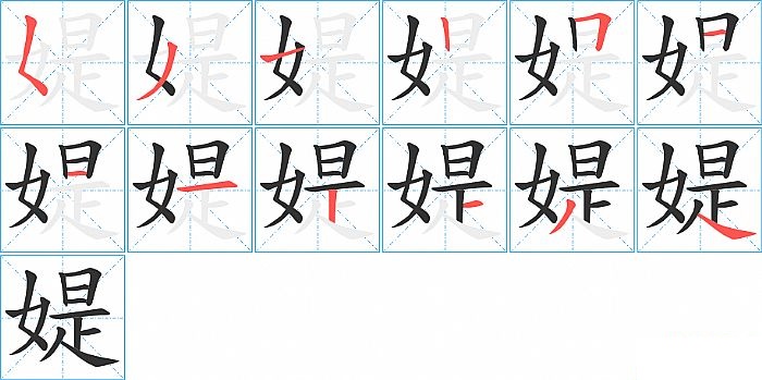 媞是左右结构,媞的部首是“女”,部外笔画9画,总笔画12画,媞的笔画顺序是“撇点、撇、横、竖、横折、横、横、横、竖、横、撇、捺”。看看“媞”字什么意思 >>