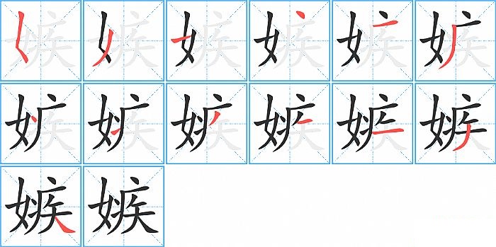 嫉是左右结构,嫉的部首是“女”,部外笔画10画,总笔画13画,嫉的笔画顺序是“撇点、撇、横、点、横、撇、点、提、撇、横、横、撇、捺”。看看“嫉”字什么意思 >>