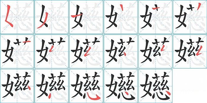 嬨是左右结构,嬨的部首是“女”,部外笔画13画,总笔画16画,嬨的笔画顺序是“撇点、撇、横、点、撇、横、撇折、撇折、点、撇折、撇折、点、点、斜钩、点、点”。看看“嬨”字什么意思 >>