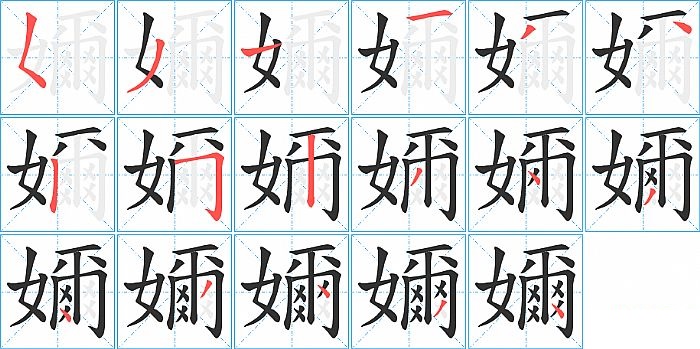 嬭是左右结构,嬭的部首是“女”,部外笔画14画,总笔画17画,嬭的笔画顺序是“撇点、撇、横、横、撇、点、竖、横折钩、竖、撇、点、撇、点、撇、点、撇、点”。看看“嬭”字什么意思 >>