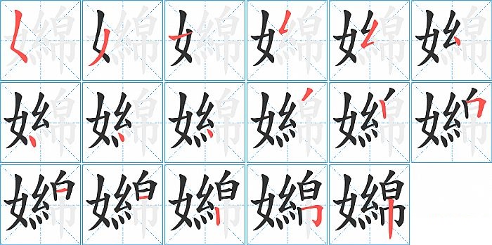 嬵是左右结构,嬵的部首是“女”,部外笔画14画,总笔画17画,嬵的笔画顺序是“撇点、撇、横、撇折、撇折、点、点、点、点、撇、竖、横折、横、横、竖、横折钩、竖”。看看“嬵”字什么意思 >>