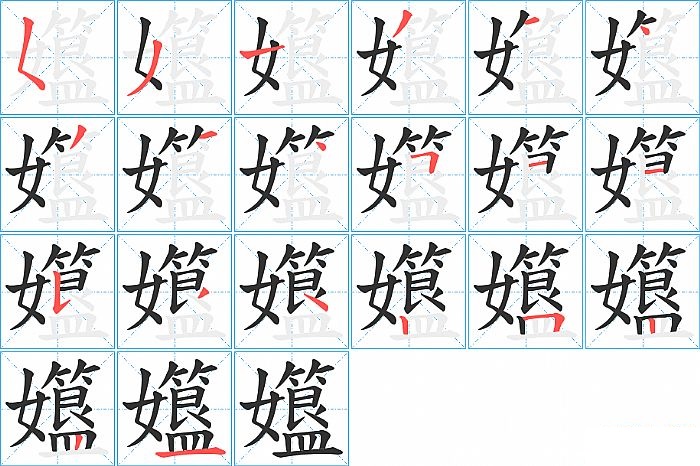 孂是左右结构,孂的部首是“女”,部外笔画17画,总笔画20画,孂的笔画顺序是“撇点、撇、横、撇、横、点、撇、横、点、横折、横、横、竖提、撇、捺、竖、横折、竖、竖、横”。看看“孂”字什么意思 >>