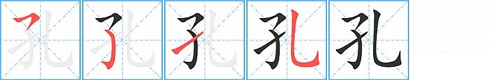 《孔》字的笔顺分步演示图(一笔一画写汉字)