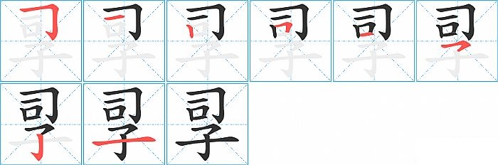 孠是上下结构,孠的部首是“子”,部外笔画5画,总笔画8画,孠的笔画顺序是“横折钩、横、竖、横折、横、横撇/横钩、竖钩、横”。看看“孠”字什么意思 >>