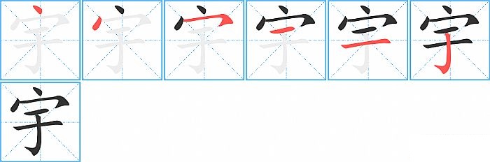 《宇》字的笔顺分步演示图(一笔一画写汉字)