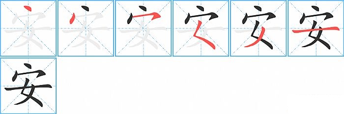 《安》字的笔顺分步演示图(一笔一画写汉字)