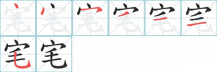 《宒》字的笔顺分步演示图(一笔一画写汉字)