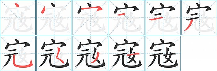 宼是上下结构,宼的部首是“宀”,部外笔画7画,总笔画10画,宼的笔画顺序是“点、点、横撇/横钩、横、横、撇、竖弯钩、撇点、撇、横”。看看“宼”字什么意思 >>