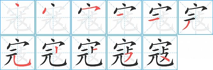 寇是上下结构,寇的部首是“宀”,部外笔画8画,总笔画11画,寇的笔画顺序是“点、点、横撇/横钩、横、横、撇、竖弯钩、竖、横、横撇/横钩、点”。看看“寇”字什么意思 >>