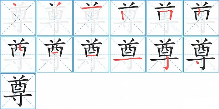 尊是上下结构,尊的部首是“寸”,部外笔画9画,总笔画12画,尊的笔画顺序是“点、撇、横、竖、横折、撇、竖折/竖弯、横、横、横、竖钩、点”。看看“尊”字什么意思 >>