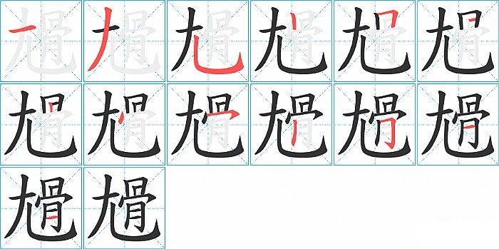 横、撇、竖弯钩、竖、横折、横折、点、横撇/横钩、竖、横折钩、横、横