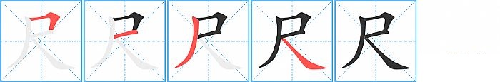 《尺》字的笔顺分步演示图(一笔一画写汉字)