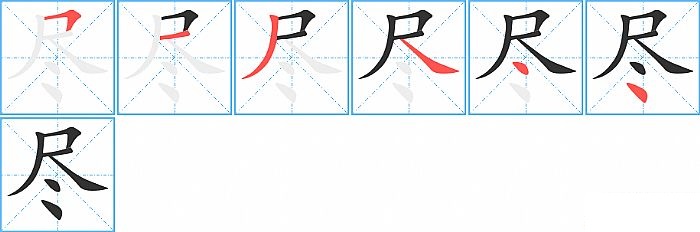 《尽》字的笔顺分步演示图(一笔一画写汉字)