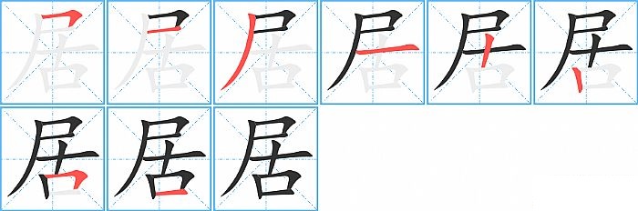 《居》字的笔顺分步演示图(一笔一画写汉字)