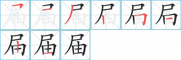 《届》字的笔顺分步演示图(一笔一画写汉字)