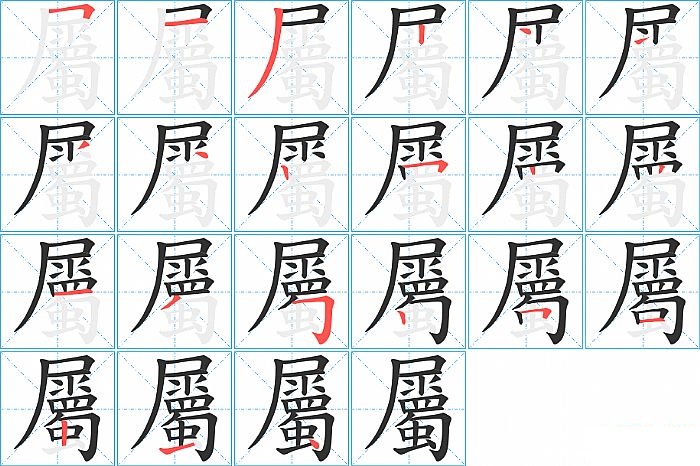 屬是左上包围结构,屬的部首是“尸”,部外笔画18画,总笔画21画,屬的笔画顺序是“横折、横、撇、竖、点、提、撇、点、竖、横折、竖、竖、横、撇、横折钩、竖、横折、横、竖、横、点”。看看“屬”字什么意思 >>