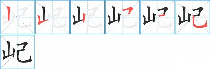 《屺》字的笔顺分步演示图(一笔一画写汉字)
