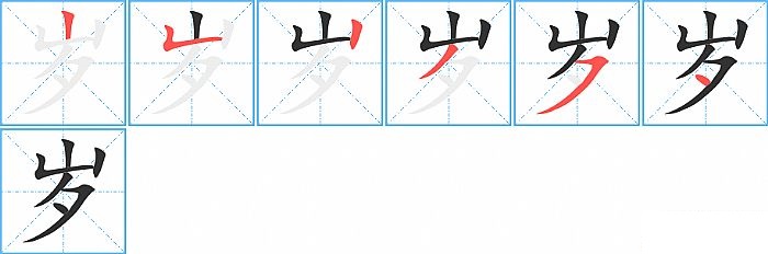 《岁》字的笔顺分步演示图(一笔一画写汉字)