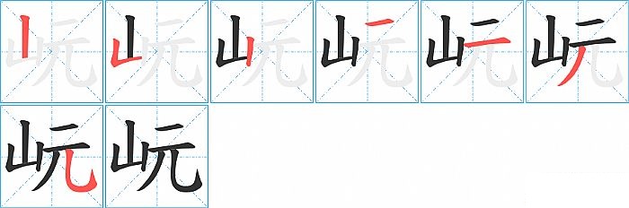 《岏》字的笔顺分步演示图(一笔一画写汉字)