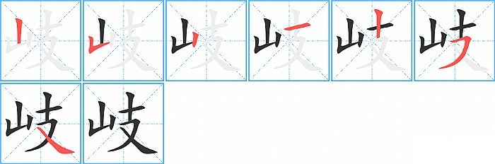 《岐》字的笔顺分步演示图(一笔一画写汉字)
