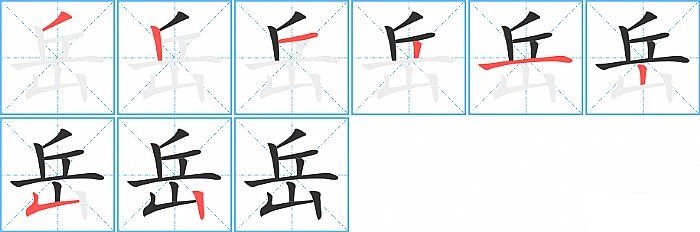 《岳》字的笔顺分步演示图(一笔一画写汉字)