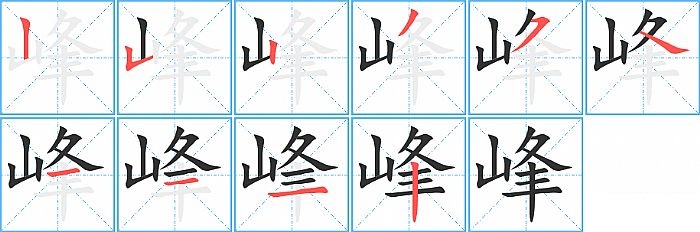 峰是左右结构,峰的部首是“山”,部外笔画7画,总笔画10画,峰的笔画顺序是“竖、竖折/竖弯、竖、撇、横撇/横钩、捺、横、横、横、竖”。看看“峰”字什么意思 >>