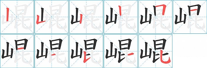 崐是左右结构,崐的部首是“山”,部外笔画8画,总笔画11画,崐的笔画顺序是“竖、竖折/竖弯、竖、竖、横折、横、横、横、竖提、撇、竖弯钩”。看看“崐”字什么意思 >>