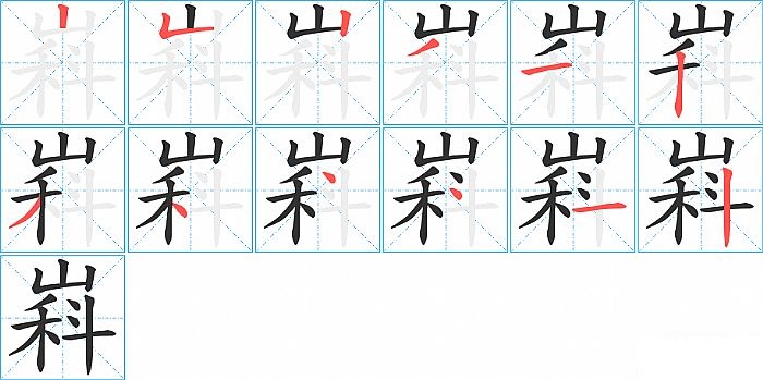 嵙是上下结构,嵙的部首是“山”,部外笔画9画,总笔画12画,嵙的笔画顺序是“竖、竖折/竖弯、竖、撇、横、竖、撇、点、点、点、横、竖”。看看“嵙”字什么意思 >>
