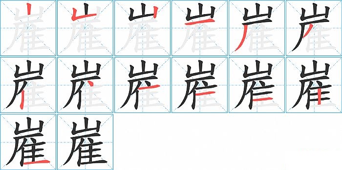 嵟是左上包围结构,嵟的部首是“山”,部外笔画10画,总笔画13画,嵟的笔画顺序是“竖、竖折/竖弯、竖、横、撇、撇、竖、点、横、横、横、竖、横”。看看“嵟”字什么意思 >>