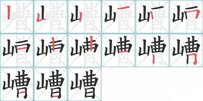 嶆是左右结构,嶆的部首是“山”,部外笔画11画,总笔画14画,嶆的笔画顺序是“竖、竖折/竖弯、竖、横、竖、横折、横、竖、竖、横、竖、横折、横、横”。看看“嶆”字什么意思 >>