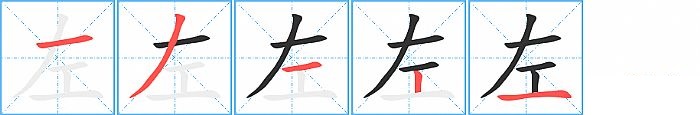 《左》字的笔顺分步演示图(一笔一画写汉字)
