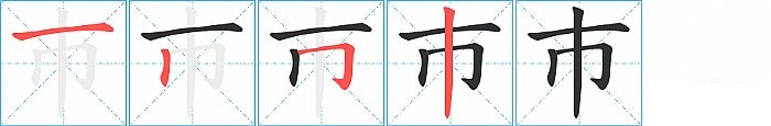 《巿》字的笔顺分步演示图(一笔一画写汉字)