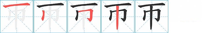 《帀》字的笔顺分步演示图(一笔一画写汉字)