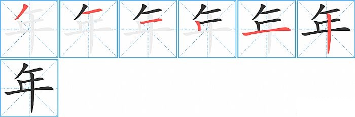 《年》字的笔顺分步演示图(一笔一画写汉字)