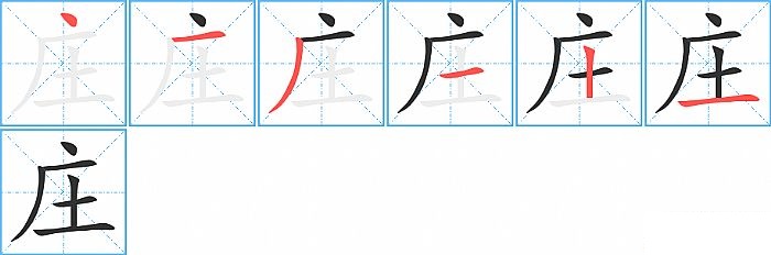 《庄》字的笔顺分步演示图(一笔一画写汉字)