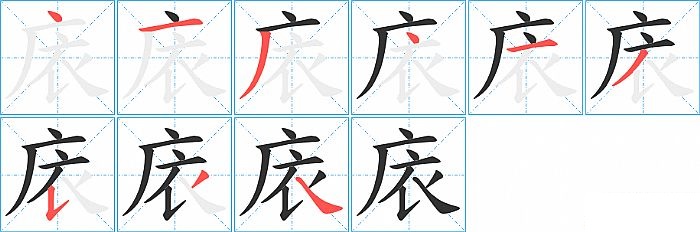 《庡》字的笔顺分步演示图(一笔一画写汉字)