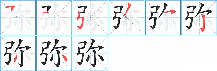 弥是左右结构,弥的部首是“弓”,部外笔画5画,总笔画8画,弥的笔画顺序是“横折、横、竖折折钩、撇、横撇/横钩、竖钩、撇、点”。看看“弥”字什么意思 >>